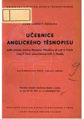 HAVELKA, Ludevít. Učebnice anglického těsnopisu podle převodu soustavy Heroutovy-Mikulíkovy. V Praze: Státní ústav těsnopisný, 1948. 90 s. Knihovna Státního ústavu těsnopisného, sv. 9.