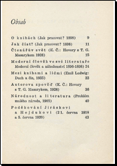 MASARYK, Tomáš Garrigue a ŠKRACH, Vasil Kaprálek, ed. Kniha duší člověka: stati a rozmluvy T.G. Masaryka o knihách a o četbě. Ilustrace Karel SVOLINSKÝ. 2. vyd. [V Kolíně: M. Kopecký, 1948. 44, [II] s.