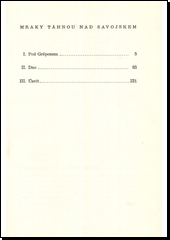 PLUHAŘ, Zdeněk. Mraky táhnou nad Savojskem: Román. 1. vyd. Praha ;, Brno: Mír, 1949. 401, [3] s. Členská edice Míru, Sv. 1.
