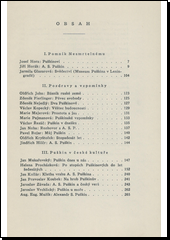 Vydáno k 150. výročí básníkova narození "jako hold díků a věrnosti všeho našeho lidu" ruskému geniovi a jeho vlasti. Soubor puškinských studií zahajuje Jiří Horák přehledným pojednáním o životě a díle P., 2. oddíl knihy tvoří "Pozdravy a vzpomínky" z pera Zd. Nejedlého, V. Kopeckého, Zd. Fierlingra, Ol. Johna, M. Majerové, M. Pujmanové a j., 3. oddíl "Puškin v čes. lit." obsahuje mezi jiným Mukařovského studii, hodnotící význam P. pro současnou čes. lit., studii H. Procházkové, sledující osudy P. díla v čes. lit. do 60. let 19. st.; v dalšícb drobnějších statích je probírán monograficky P. vliv na jednotlivé čes. básníky (Jos. Horu), dále je pojednáno o P. na českém jevišti, o práci čes. ilustrátorů P. a j. Sborník je ukončen bibliografií "Puškin v čes. lit.", jež má dvě části: I. České překlady z Puškina, II. Studie, články a stati o Puškinovi.