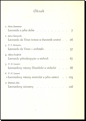 Ve sborníku je otištěno sedm statí sovětských, polských a německých vědců, které byly napsány u příležitosti pětistého výročí Leonardova narození. Stati poučuji o méně známých oborech rozsáhlé činnosti jednoho z největších mistrů italské renesance i o tom, jak hodnotí Leonarda marxistická věda. Autoři ukazují celou složitou osobnost umělcovu, mnohostrannost jeho zájmů, osvětlují jeho umění i umělecké a filosofické názory, jeho badatelskou činnost v oboru přírodních věd a techniky, seznamují s jeho pracemi architektonickými i s jeho písemným odkazem v oblasti theorie umění. Úvodní stať H. Kamnitzera probírá politickou situaci soudobé Italie, ukazuje v jakých podmínkách umělec vyrůstal a které události ovlivnily jeho vývoj.