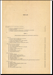 V první části je probráno promítání pravoúhlé včetně osvětlení těles. Druhá část je věnována axonometrii, kótovanému promítání a perspektivě. Spis je spojení populární knihy s učebnicí a vyžaduje, aby si čtenář vyřešil i úkoly, které jsou uvedeny jako cvičení.
