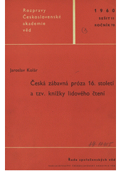 KOLÁR, Jaroslav. Česká zábavná próza 16. století a tzv. knížky lidového čtení. Praha: ČSAV, 1960. 108, [2] s. Rozpravy ČSAV. Ř. společ. věd, Roč. 70/1960. Seš. 11.