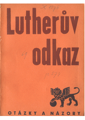 LUTHER, Martin. [Lutherův odkaz]. V Praze: Jan Laichter, 1935. 426 s. Otázky a názory, Kn. LXIX.