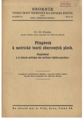 KLAPKA, Jiří. Příspěvek k metrické teorii zborcených ploch =: (Supplément à la théorie métrique des surfaces réglées gauches). Brno: Vysoká škola technická Dra Edvarda Beneše, 1937. 15 stran. Sborník Vysoké školy technické Dra Edvarda Beneše, svazek XI., spis 40..