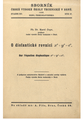 ČUPR, Karel. O diofantické rovnici xⁿ + yⁿ = cⁿ =: Sur l'équation diophantique xⁿ + yⁿ = cⁿ ... Brno: Česká vysoká škola technická :, A. Píša [distributor], 1938. 14 s. Sborník České vysoké školy technické v Brně, sv. XII. Spis 47.