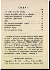 DOBROVOLNÝ, Bohumil. Mluvená španělština: Španělsky v kostce: Malá učebnice tak sestavená, že stačí k naučení mluvené řeči a přece ji můžete mít stále při sobě v kapse : Je výběrem nejdůležitějších slov a vět mluvené a obchodní řeči. 2. dopln. vyd., [na ob.] 3. vyd. Praha: Jos. Hokr, [1939. 125 - [III] s. Škola do kapsy, Sv. 4.