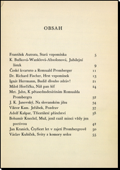 Sborník příspěvků vydaný při příležitosti 75. narozenin olomouckého nakladatele a knihkupce Romualda Prombergera (1856-1932), významné osobnosti místních kulturních dějin.