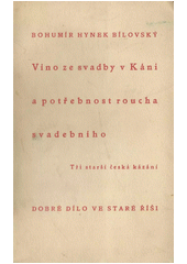BILOVSKÝ, Bohumír Hynek Josef. Víno ze svadby v Káni a potřebnost roucha svadebního: tři starší česká kázání. Ve Staré Říši na Moravě: Marta Florianová, 1933. 93 s.Dobré dílo, sv. 114.