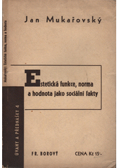 MUKAŘOVSKÝ, Jan. Estetická funkce, norma a hodnota jako sociální fakty =: Fonction, norme et valeur esthétiques comme faits sociaux. Praha: Fr. Borový, 1936. 85, [iii] s. Úvahy a přednášky, sv. 4.