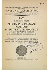 VYSOKÝ, Zdeněk K. Příspěvky k poznání pramenů spisů Tertullianových a vzájemných vztahů nejstarší apologetické literatury křesťanské =: Remarques sur les sources des oeuvres de Tertullien et les rapports mutuels des plus anciens écrits de la littérature apologétique chrétienne. V Praze: Filosofická fakulta university Karlovy, 1937. 132 - [I] s. Práce z vědeckých ústavů filosofické fakulty university Karlovy, Sv. XLIV.