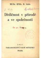 SEKLA, Bohumil. Dědičnost v přírodě a ve společnosti. Praha: Volná myšlenka, 1937. 357 stran. Sešitová knihovna Volné myšlenky, sv. 3.
