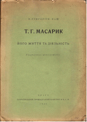 HRYHORÌJIV, Nykyfor Jakovyč. T.H. Masaryk: joho žyttja ta dìjal‘nìst‘. Praha: Ukrajins‘kyj hromads‘kyj komìtet v Č.S.R., 1925. 88 stran, 6 nečíslovaných listů obrazových příloh.