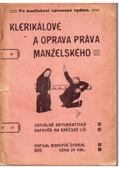 ŠMERAL, Bohumír. Klerikálové a oprava manželského práva: sociálně-demokratická odpověď na kněžské lži. V Praze: Nákladem Tiskového výboru českoslovanské sociálně demokratické strany dělnické (čas. Zář), 1906, 42 s.