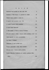 Sborník obsahuje 14 na základě historických pramenů zpracovaných statí, z nichž většinu autor původně otiskl v časopisech: Královský hrad pražský po ohni roku 1541. Hradčany a Malá Strana v 2. pol. 16. stol. Městské úřady pražské ve stol. 18. O spojení měst pražských r. 1784. O radnici Nového města pražského. O konci kaple Betlemské. Z dějin špitálu sv. Pavla za branou Poříčskou. Při počtu záduší sv. Kříže na Starém městě pražském r. 1615. Sklad slanečků na rynku novoměstském. Na Výtoni v Podskalí. Nekázanka - O staré pražské ulici. Paměti vyšehradské z doby války třicetileté. Židovská ulice na Novém městě pražském. Nadání Albrechta z Valdštějna pro neofyty (mladé židy, kteří se obrátili na katolickou víru a nechali se pokřtít) z pokolení židovského.