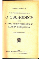 HERMANN-OTAVSKÝ, Karel. O obchodech podle čtvrté knihy všeobecného zákona obchodního. Druhé doplněné vydání. Praha: Všehrd, 1928, 136 s. Publikace Všehrdu, 32.