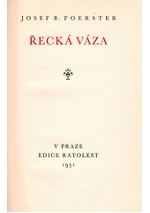 FOERSTER, Josef Bohuslav. Řecká váza. V Praze: Antonín Čejka, 1931. Edice Ratolest, sv. III.
