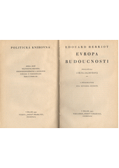 HERRIOT, Edouard. Evropa budoucnosti. V Praze: Orbis, 1931. 212 s. Politická knihovna. Ř. 2, kn. 12.