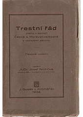 Trestní řád platný v zemích České a Moravskoslezské s vedlejšími zákony. Textové vyd. Editor Josef NOŽIČKA. V Kroměříži: J. Gusek, 1932, 412 s.