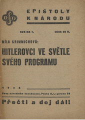 GRIMMICHOVÁ, Míla. Hitlerovci ve světle svého programu. Praha: Svaz národního osvobození, 1933. 15 stran. Epištoly k národu, svazek 7..