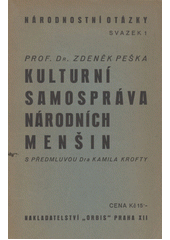 PEŠKA, Zdeněk. Kulturní samospráva národních menšin. V Praze: Orbis, 1933. 76 s. Národnostní otázky, sv. 1.