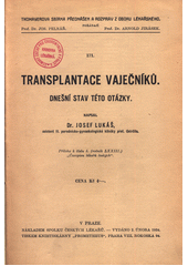 LUKÁŠ, Josef. Transplantace vaječníků: dnešní stav této otázky. Praha: Spolek českých lékařů, 1934. 10 s. Thomayerova sbírka přednášek a rozprav z oboru lékařského, 171.