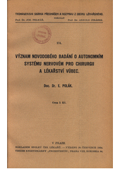 POLÁK, Emerich. Význam novodobého bádání o autonomním systému nervovém pro chirurgii a lékařství vůbec. Praha: Spolek českých lékařů, 1934. 15 s. Thomayerova sbírka přednášek a rozprav z oboru lékařského, 174.
