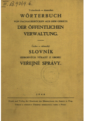 Tschechisch-deutsches Wörterbuch von Fachausdrücken aus dem Gebiete der öffentlichen Verwaltung =: Česko-německý slovník odborných výrazů z oboru veřejné správy. Prag: Druckerei des Ministeriums des Innern, 1940. 306 s.