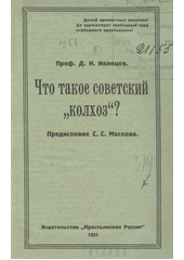 IVANCOV, Dmitrij Nikolajevič. Čto takoje sovetskij "kolchoz"?. Praga: Krest'janskaja Rossija, 1931. 28 s.