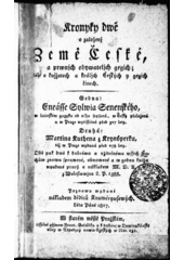 Kronyky dwě o založenj Země České, a prwnjch obywatelů gegich ... :: Gedna Eneásse Sylwia Senenského ... : Druhá Martina Kuthena z Krynsperku ... /