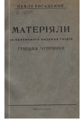 BOHAC‘KYJ, Pavlo. Materijaly do krytyčnoho vydannja tvoriv Hryc'ka Čuprynky. Praha: Ukrajins'kyj hromads'kyj vydavnyčyj fond, 1926. 194 s. Tvory / Hryc'ko Čuprynka.