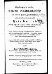 DEVOTY, Josef František Karel. Wyobrazenj a popsánj Chrámu Swatobarborského nad potokem Páchem, ginák Wrchlický, w králowském swobodném hornjm městě Hoře Kuttné, před časy od Hornjků ... postaweného ... W Praze: Šollowská kněhtiskárna, Wedenjm Jana H. Pospjssila, 1828. 64 s.