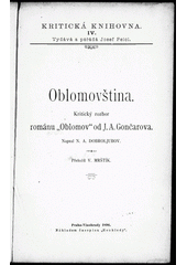DOBROLJUBOV, Nikolaj Aleksandrovič. Oblomovština: kritický rozbor románu "Oblomov" od J.A. Gončarova. Překlad Vilém MRŠTÍK. Praha: Rozhledy, 1896. 55 s. Kritická knihovna, 4.