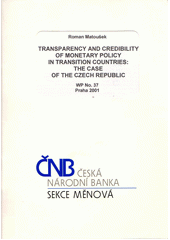 MATOUŠEK, Roman. Transparency and credibility of monetary policy in transition countries: the case of the Czech Republic. Praha: Česká národní banka, Sekce měnová, 2001. 43 s. WP, no. 37.