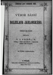 JABLONSKÝ, Boleslav. Výbor básní Boleslava Jablonského. V Praze: nákladem knihkupectví Jaroslava Pospíšila, 1895. 96 stran. Zábavy pro mládež, 182.