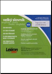 Velký slovník anglicko-český, česko-anglický: Veľký slovník anglicko-slovenský, slovensko-anglický [elektronický zdroj]. Verze 4.0. Brno: Lingea, [2001]. 1 elektronický optický disk (CD-ROM). Lingea Lexicon 2002.
