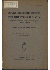 HORNA, Richard. Návrh zemského zřízení pro Krnovsko z r. 1673: Příspěvek k dějinám recepce římského práva v zemích českých. Praha: nákl. vl., 1922. 31 s.