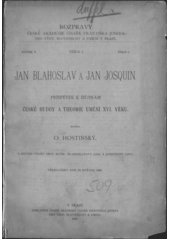 HOSTINSKÝ, Otakar, BLAHOSLAV, Jan, ed. a JOSQUIN, Jan, ed. Jan Blahoslav a Jan Josquin: příspěvek k dějinám české hudby a theorie umění XVI. věku : s novými otisky obou muzik: Blahoslavovy (1569) a Josquinovy (1561). V Praze: Nákladem České akademie císaře Františka Josefa pro vědy, slovesnost a umění, 1896. c, 136 stran, 3 nečíslované listy obrazových příloh. Rozpravy České akademie císaře Františka Josefa pro vědy, slovesnost a umění v Praze, roč. V., tř. I., č. 1.