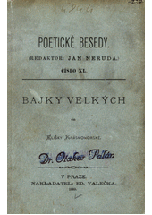 KRÁSNOHORSKÁ, Eliška. Bajky velkých. V Praze: Eduard Valečka, 1889. 115 stran. Poetických besed číslo XL.