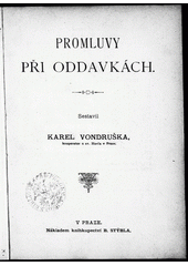 VONDRUŠKA, Karel. Promluvy při oddavkách. V Praze: B. Stýblo, [1889]. 79 s.