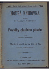 KOSTELECKÝ, Oldřich S. Povídky chudého písaře. V Praze: Nákladem dra. Vácslava Řezníčka, 1899. 154 s. Modré knihovny, č. 49., 8. ročníku sv. 7.