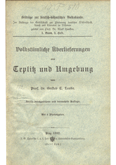 LAUBE, Gustav Carl. Volkstümliche Überlieferungen aus Teplitz und Umgebung. 2. durchgesehene und vermehrte Aufl. Prag: J.G. Calve, 1902. 135, 1 s. Beiträge zur deutsch-böhmischen Volkskunde, 1. Bd. 2. Hft..
