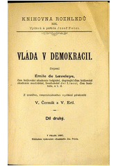 DE LAVELEY, Émile. Vláda v demokracii. Překlad V. ČERMÁK, překlad Václav ERTL. V Praze: Nákladem vydavatele Rozhledů Jos. Pelcla, 1897. 498 s. Knihovna Rozhledů, 19.