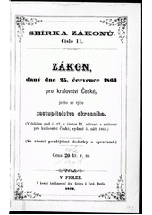 České království. Zákon, daný dne 25. července 1864, pro království České, ježto se týče zastupitelstva okresního: (vyhlášen pod č. 27, v částce IX. zákonů a nařízení pro království České, vydané 5. září 1864) : (se všemi pozdějšími dodatky a opravami). V Praze: V komisi knihkupectví dra. Grégra & Ferd. Dattla, 1870. 50 s. Sbírka zákonů, č. 11.