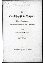 PEISKER, Jan. Die Knechtschaft in Böhmen: eine Streitfrage der böhmischen Socialgeschichte : Gegen Herrn Julius Lippert. Prag: nakladatel není známý, 1890. 82 stran.