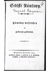 RAYMANN, František Josef. Sedlské Námluwy: půwodnj weselohra w gednom gednánj. Hradec Králowé: J.H. Pospjssil, 1819. 30 s.