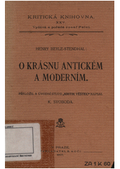 O krásnu antickém a moderním. Překlad Karel SVOBODA. V Praze: B. Kočí, 1907. 170 s. Kritická knihovna, sv. 25.