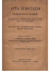 TINGL, Franti��ek Antonín. Acta judiciaria archiepiscopatus Pragensis sub honorabili domino Joanne Pomuk vicario in spiritualibus generali conscripta et nunc prima vice typis edita: cum licentia reverendissimi ordinariatus Pragensis. Pragae: nakladatel není známý, 1865. 130 stran.