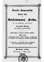 Tomáše Kempenského Čtwero kněh o Následovánj Krista. Překlad František DOUCHA. Stereotypnj, rytinami ozdobené wyd., 5. otisk s přídavkem modliteb. W Brně: Nitsch a Grosse, 1853. vi, 308, 67 s.