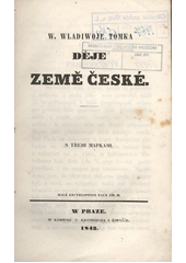 TOMEK, Václav Vladivoj. W. Wladiwoje Tomka Děje země české. W Praze: Nákladem Českého museum :, W kommissí u Kronbergra i Řiwnáče, 1843. x, 339 s., [3] složené mapy (19 x 26 cm). Malá encyklopedie nauk, díl 2..